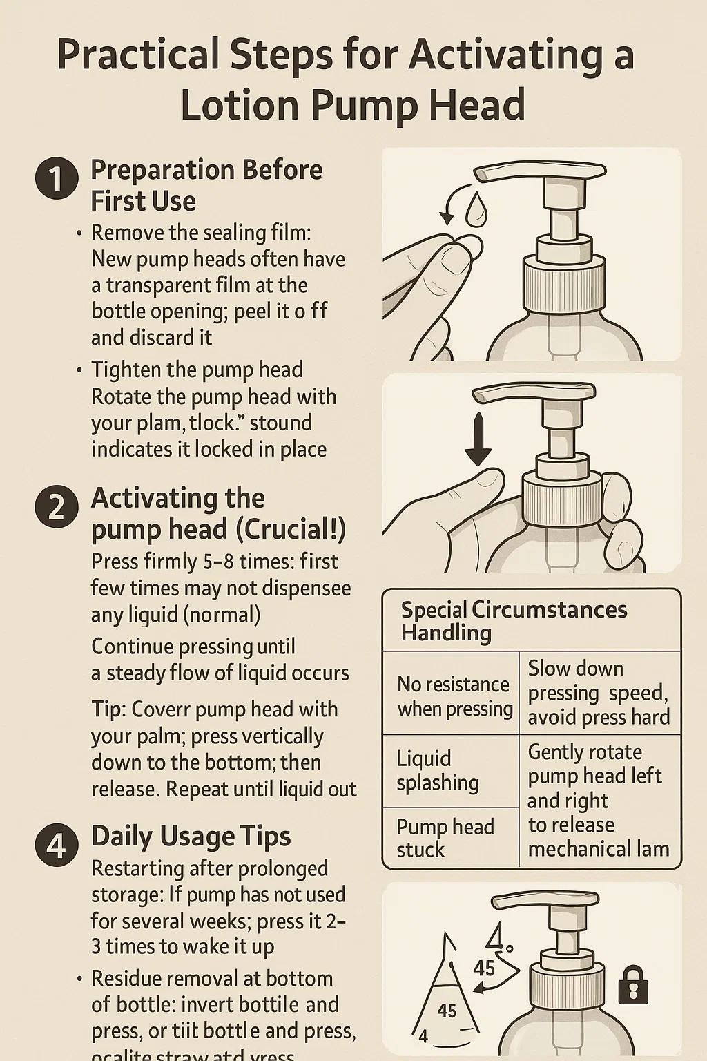 ขั้นตอนการปฏิบัติในการเปิดใช้งานโลชั่น หัวปั๊ม