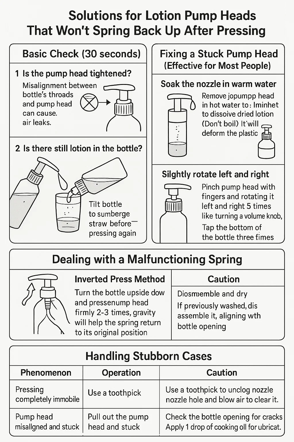 โซลูชั่นสำหรับ หัวปั้มโลชั่น ซึ่งจะไม่เด้งกลับขึ้นมาหลังจากกด: